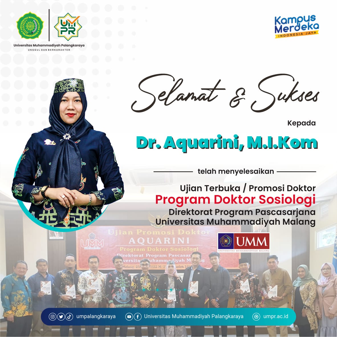 Atas nama Keluarga Besar Fakultas Ilmu Sosial dan Ilmu Politik Universitas Muhammadiyah Palangkaraya Mengucapkan Selamat dan Sukses kepada Dr. Aquarini, M.I.Kom telah menyelesaikan Ujian Terbuka/Promosi pada program Doktor Sosiologi pada Direktorat Program Pascasarjana Universitas Muhammadiyah Malang.Read More
