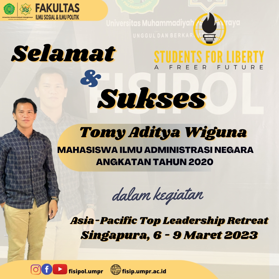 Halo Kawan-kawan FISIPOL Unggulan… Kami sangat bangga atas persewaan kawan-kawan mahasiswa yang terus menerus meraih pengalaman dan prestasi. Kami ucapkan selamat dan sukses untuk Tomy Aditya Wiguna Mahasiswa Aktif Program Studi Ilmu Administrasi Negara yang mengikuti Top Leadership Retreat Program di Singapore, 6-9 Maret 2023. Tomy merupakan 20 dari 45 mahasiswa terbaik di ASIA-Pacific untuk...Read More