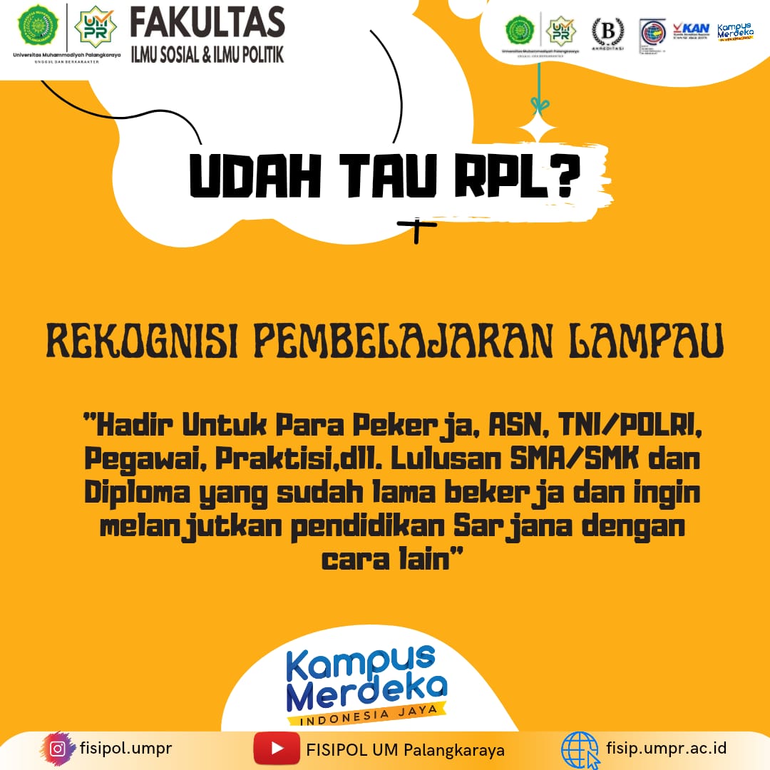 Bingung mau kuliah, tapi sibuk dengan tuntutan pekerjaan setiap hari dan sudah bekerja cukup lama???? Ettzzzz tahan dulu kalimatnya, karena kami Fakultas Ilmu Sosial dan Ilmu Politik menawarkan solusi terbaik untuk Anda Para Pekerja. Kami hadir dengan inovasi baru dalam mengcover usaha Anda bekerja selama ini menjadi sebuah pengakuan dalam bidang akademik. Rekognisi Pembelajaran Lampau...Read More